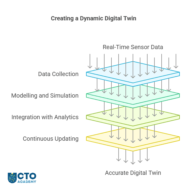 Creating a digital twin involves integrating multiple data sources, including sensors, IoT devices and historical records, to generate a detailed model of the physical asset. The process typically follows these steps: