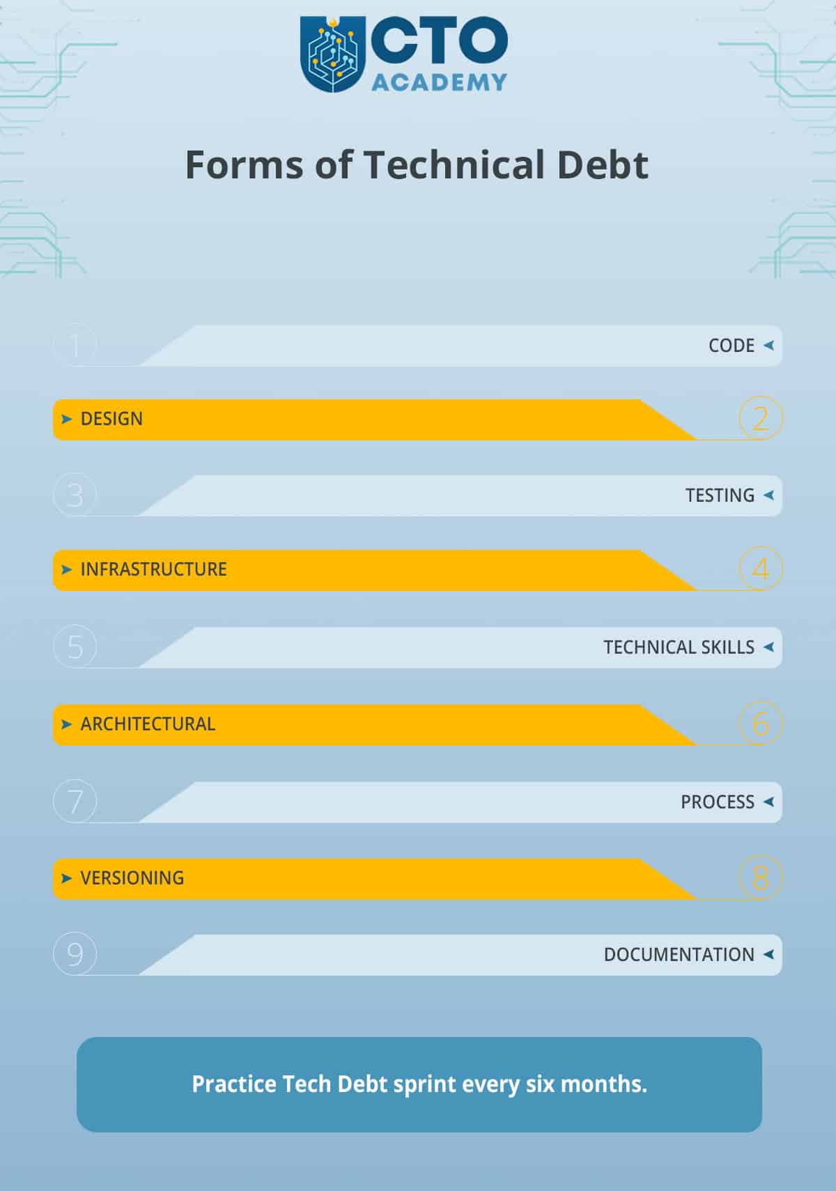 “Tech Debt sprint every six months”.