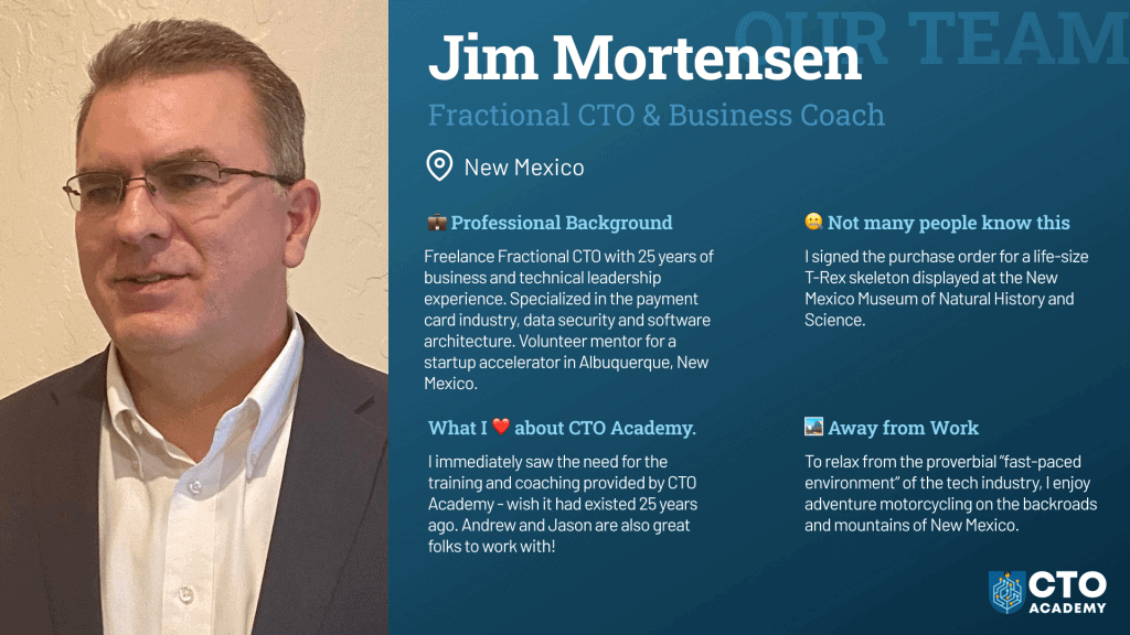Alongside coaching global tech leaders with CTO Academy, he also mentors locally in New Mexico.